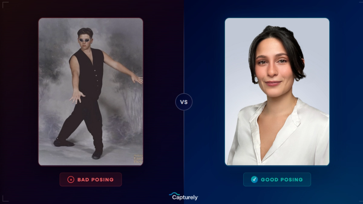 After delivering 100,000+ headshots for companies like Google, Netflix, EY, and Deloitte, Capturely’s photography team has seen every mistake. These are the poses that consistently undermine the photos they’re meant to improve.